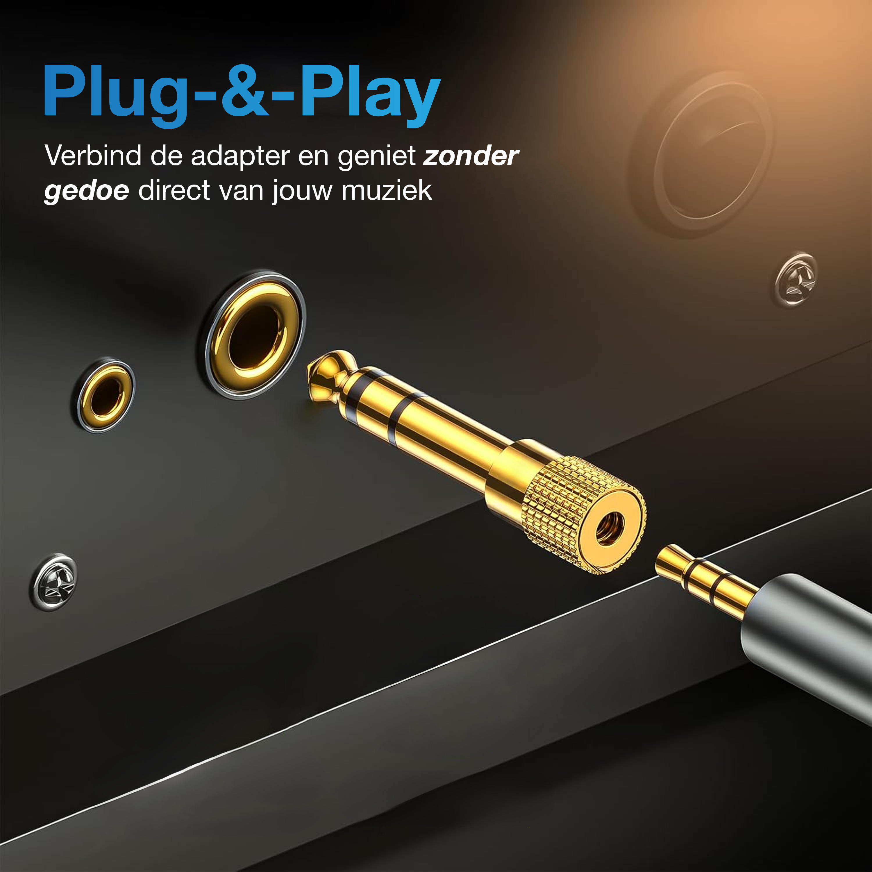 • 6.35 mm male naar 3.5 mm female – Ideaal voor koptelefoons en kabels met 3.5 mm plug.