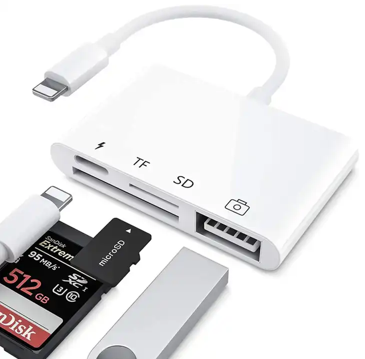 Duik in de veelzijdige wereld van onze compacte, witte 4-in-1 multifunctionele hub, op maat gemaakt en dus geschikt voor Apple iPhone en iPad. Deze slim ontworpen hub biedt een scala aan mogelijkheden, inclusief een 8 Pins Lightning PD, een USB 3.0 poort en een Micro SD/SD kaartlezer. Ontworpen om jouw digitale leven te vereenvoudigen, geeft deze hub je de kracht om op te laden, gegevens over te dragen en bestanden te lezen, allemaal in één handige gadget.
