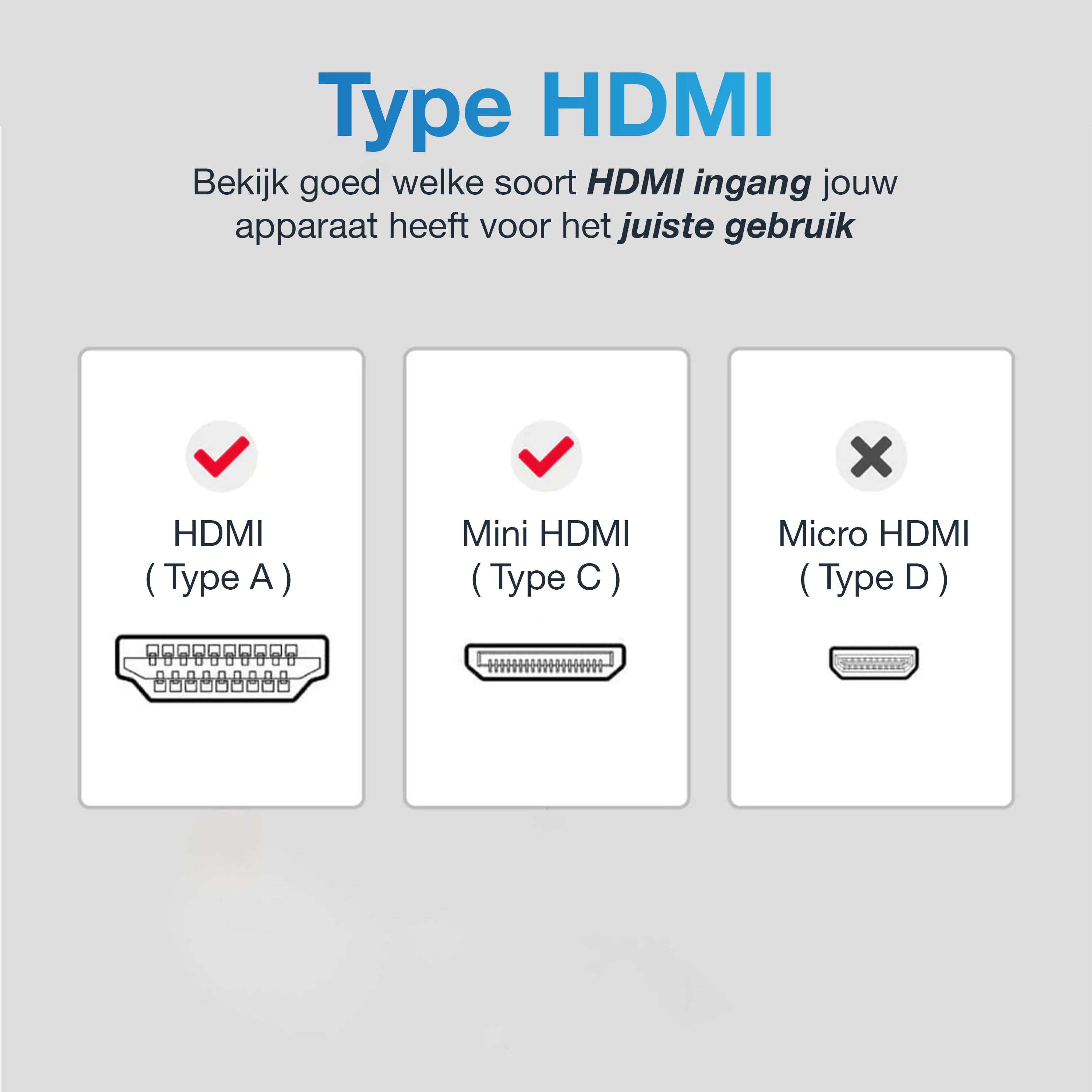 • Mini HDMI (male) naar HDMI (female) – Verbind apparaten met Mini HDMI-uitgang met een standaard HDMI-kabel.
