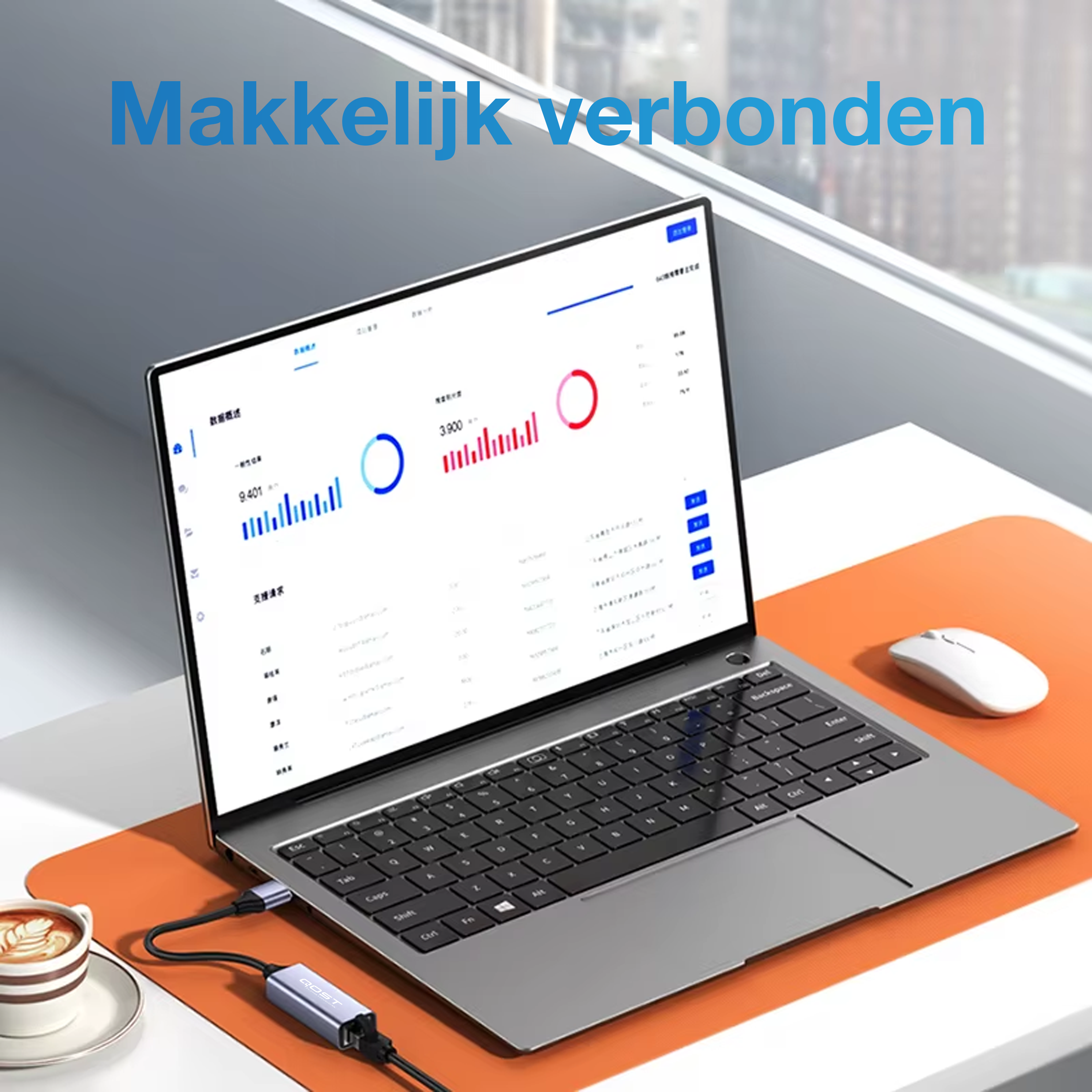 Zeer eenvoudig kun je begruik maken van het netwerk d.m.v. de netwerkadapter te connecteren met uw laptop. Hiervoor hoeft u enkel de USB aansluiting in uw laptop te plaatsen en te worden gekoppeld met een netwerkkabel.