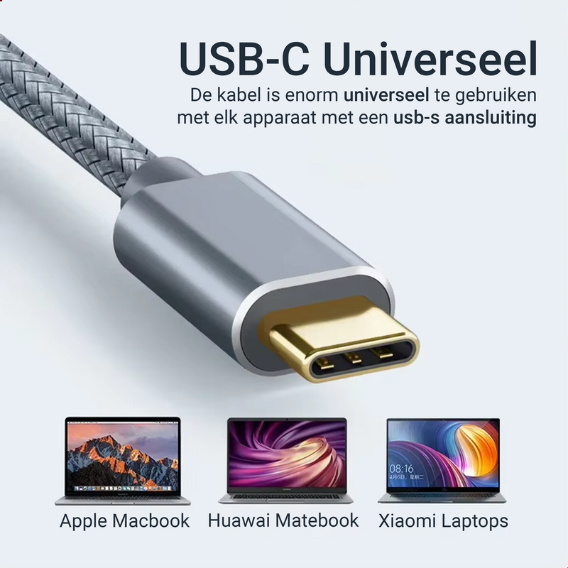 • Gevlochten ontwerp in Spacegrey: Stijlvol, duurzaam en bestand tegen dagelijkse slijtage. Deze kabel is niet alleen praktisch, maar voegt ook een moderne uitstraling toe aan je werkplek.
